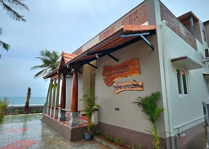 Located approximately 6 km from the Alamparai Fort, the beachfront Purush Samudhra Villa Cheyur boasts a private swimming pool with a Jacuzzi. The villa is nestled in a beach area of Cheyur and offers Wi-Fi and complimentary private parking.